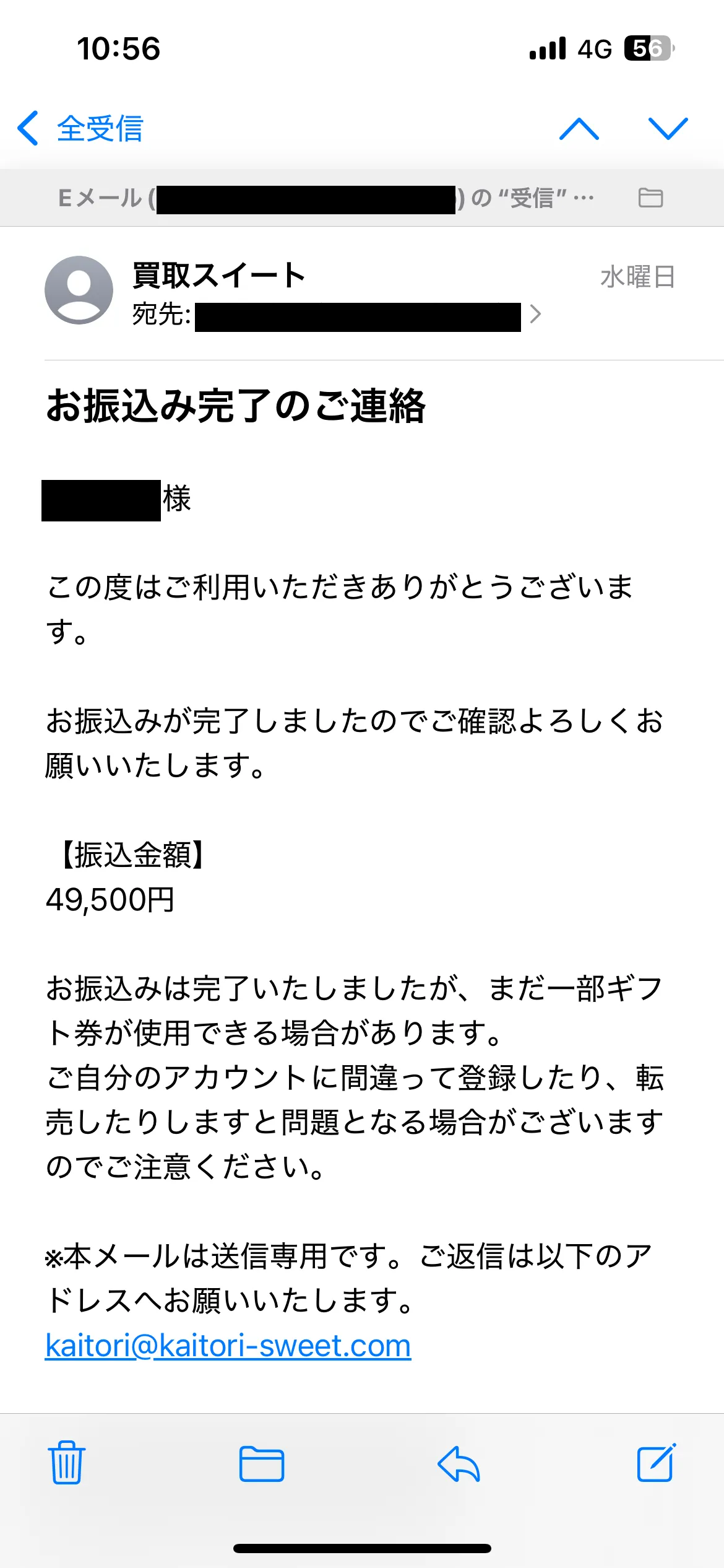 とても早く振り込みいただきました。